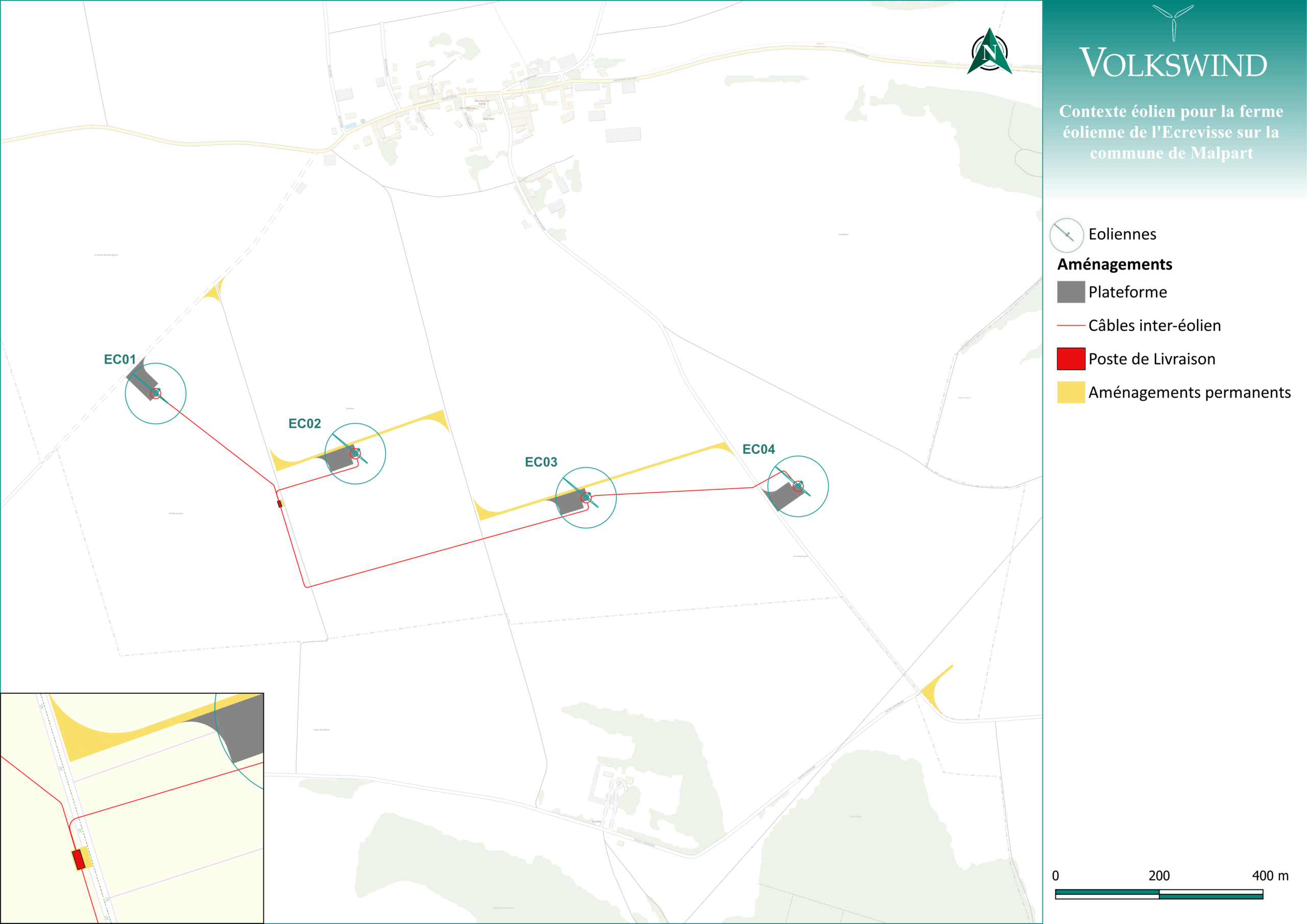 Le projet éolien de l’écrevisse est situé sur la commune de Malpart. Ce projet se situe à l’est de la route départementale 26.